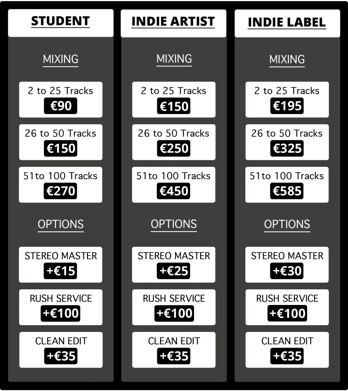 A professional mix will help your song compete with major label releases, and it will help you to stand out amongst the +65000 songs published on-line every day!